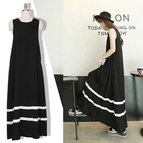 [신상오픈런]여자 스퀘어넥 나시 스트링 빅사이즈 블랙 롱원피스