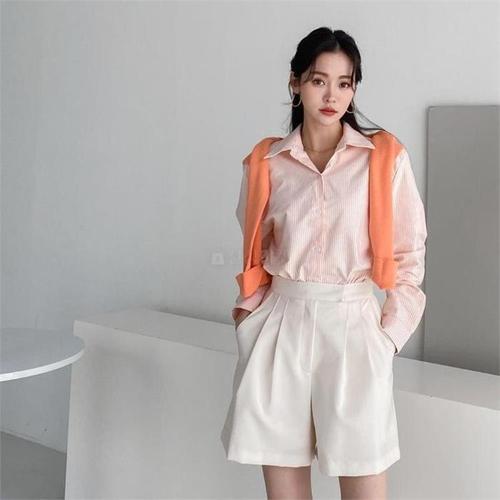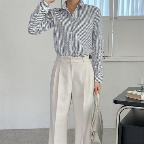 [다잇템]여자 줄무늬 코튼셔츠 롱슬리브 출근룩 셔츠 (8173561A)