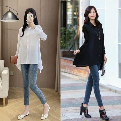 [오너클랜]인기상품 여성용 루즈핏 롱 셔츠 화이트 블랙 데일리 오피스 캐주얼 블라우스 [WFLLAOS_260304]