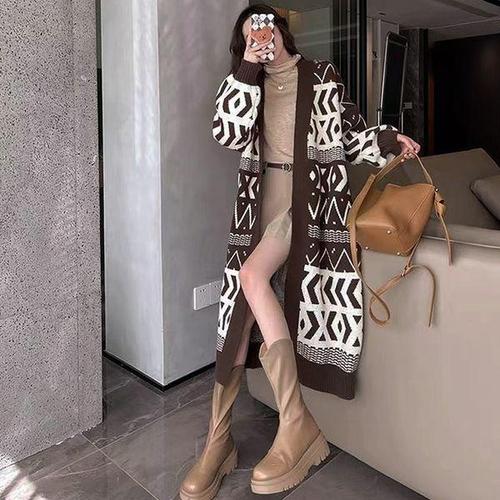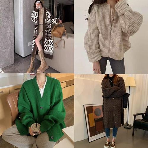708090 여성 롱 니트 가디건 두꺼운 루즈핏 스웨터