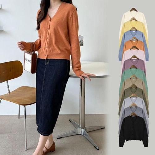 [올포유] [모델착장] 여성 솔리드 브이넥 니트 롱가디건 ALSCL8421-915