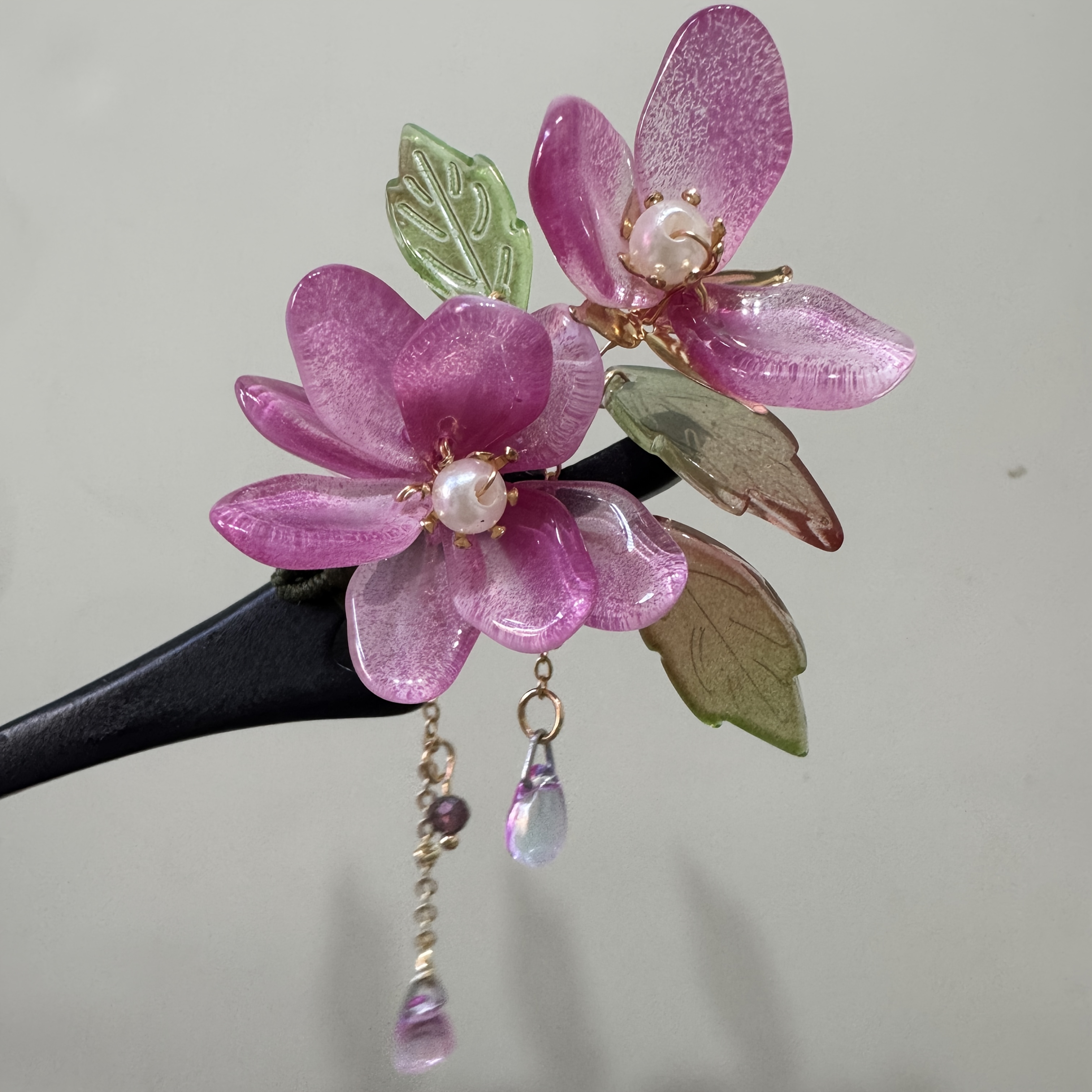 TEMU 빈티지 우아한 진분홍 꽃 머리핀 & 비즈 눈물방울 태슬 - 여성용 롱 헤어 번 메이커, 웨딩, 프롬, 파티 - 손세탁 전용, 레트로 헤어 클립, 브레이드, 포니테일, 번용