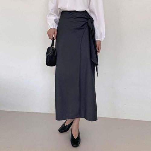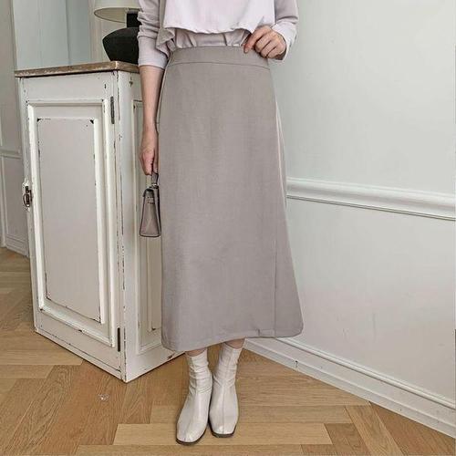 [옷자락] 여성 심플 무지컬러 스판 뒷밴딩 일자핏 랩 롱 스커트