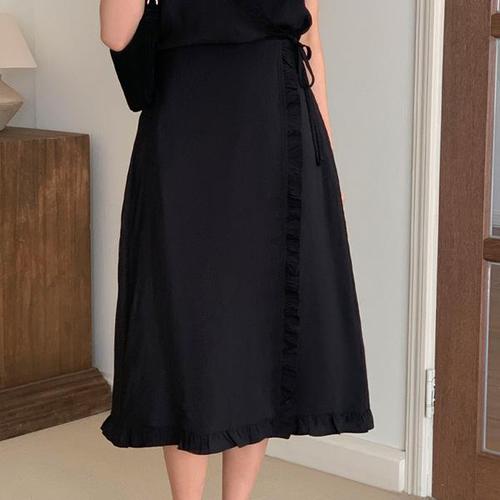 [에이치스타일](SK)프릴랩스커트 봄 여성 랩스커트 롱 치마