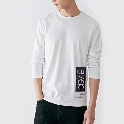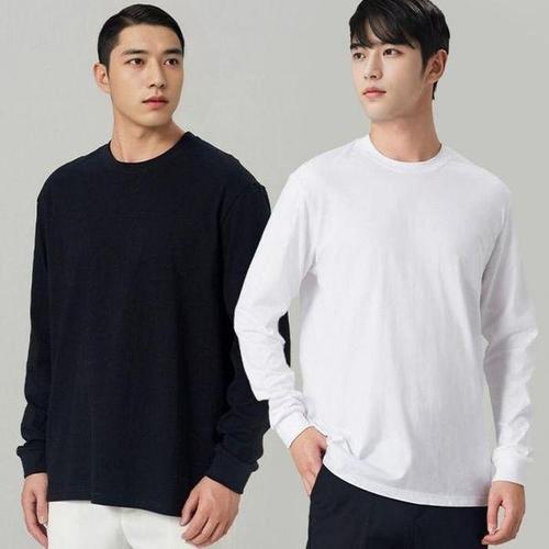 [에이치플러스몰]남자 기본 라운드 무지 긴팔 티셔츠 면티 롱슬리브