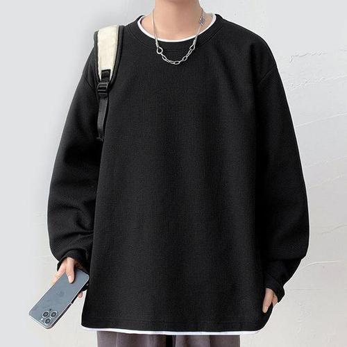 [에이치플러스몰]의류 롱슬리브 레이어드 트렌디 와플 면티 오버