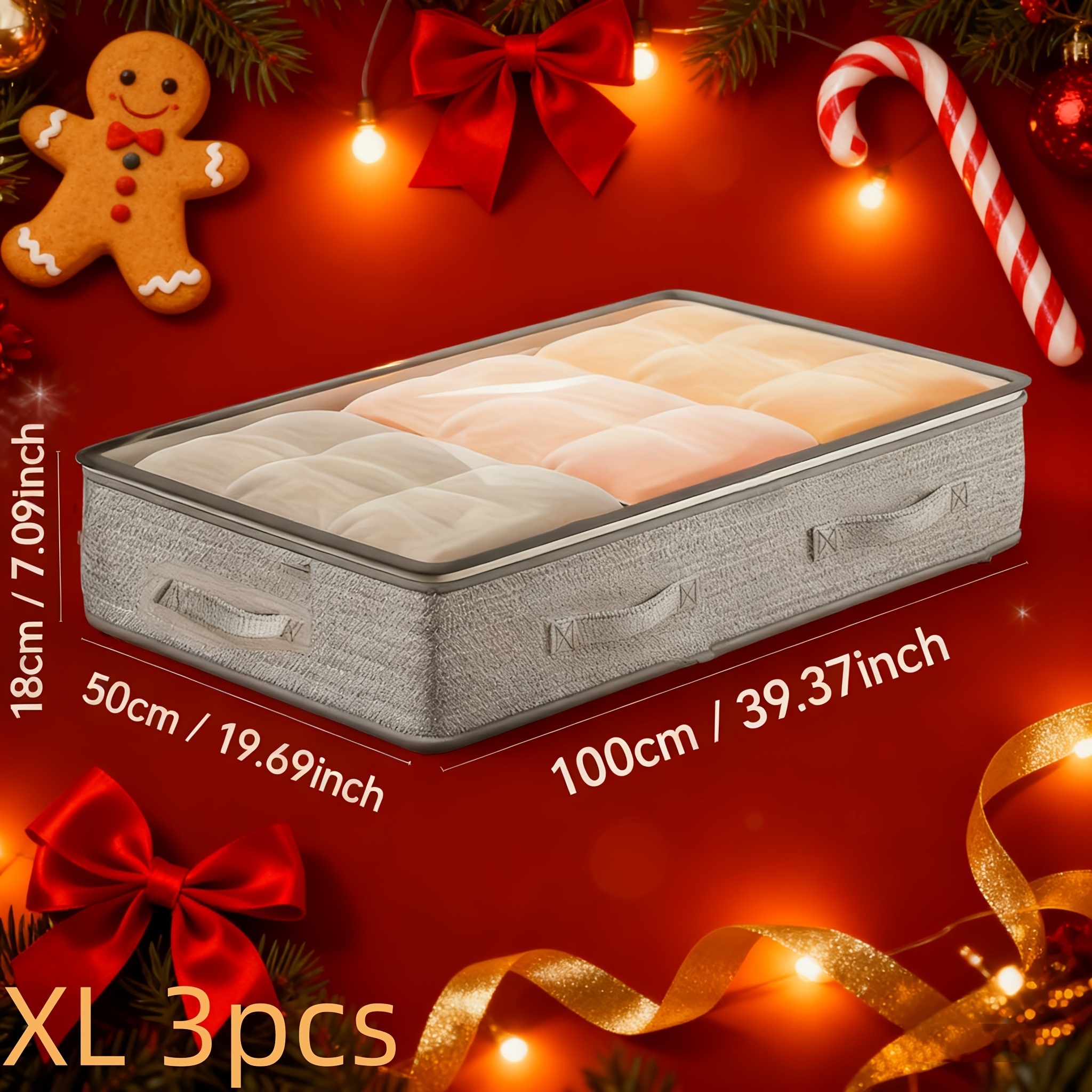 TEMU 손잡이 달린 침대 밑 수납 상자 3개 세트 - 접이식 패브릭 정리함, 담요, 수건, 퀼트, 스웨터, 베개, 시트 및 포장지 등을 위한 다중 칸막이 디자인|이불정리함
