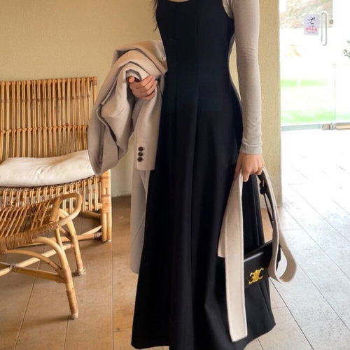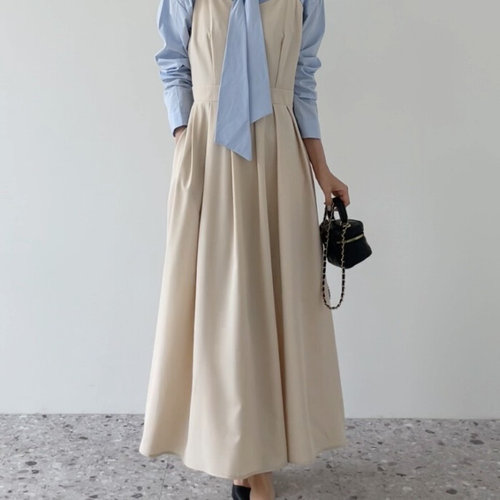 결혼식 하객 룩 레이어드 뷔스티에 나시 롱 원피스 WFL4K81