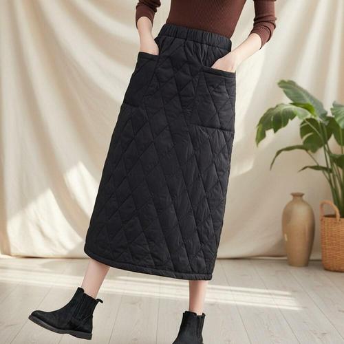 [옷자락]여성 겨울용 두툼한 누빔 롱스커트