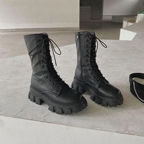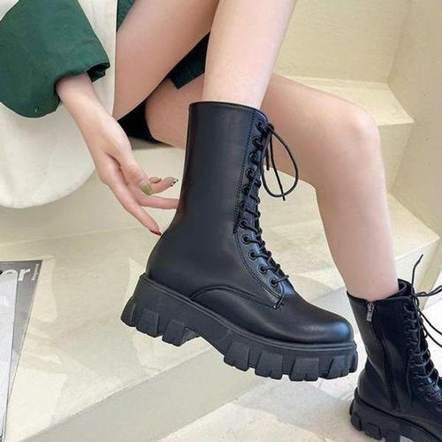 데일리 통굽 여성 레이스업 블랙 롱 워커 LU65