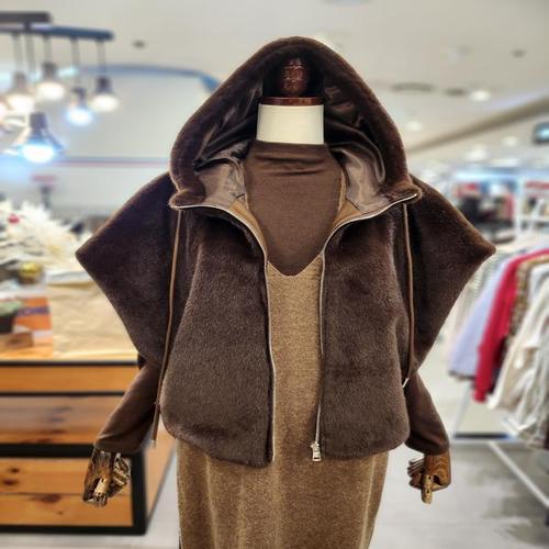 [행복여] 허밍 루즈핏 밍크 퍼 후드 조끼