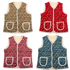 [롱키원] 꽃무늬 김장조끼 할머니조끼 겨울 털 보온 할매 조끼 촌캉스 김장옷