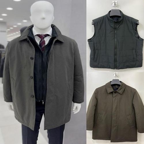 [트루젠]남성 겨울 거위털 구스다운 패딩 롱 맥코트형 점퍼 내피 경량 조끼 세트 2컬러