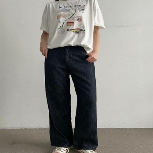 [엄지척]여성 힙한 제림 빈티지 프린팅 캐주얼 롱 반팔티셔츠_19611286_667501