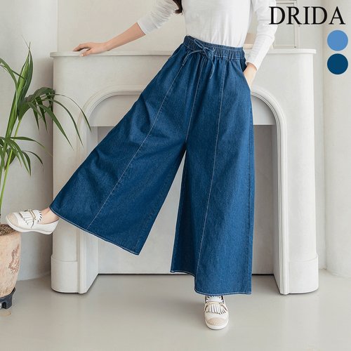 드리다 여자 봄 여름 밴딩 롱 와이드 치마바지 통바지 데님 청바지 팬츠 40-50대 미시 중년여성 등원룩