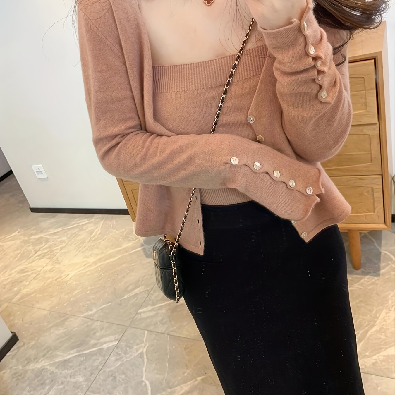 TEMU 2025 가을 분위기 롱 슬리브 가디건 & 캐미솔 탱크탑 투피스 세트