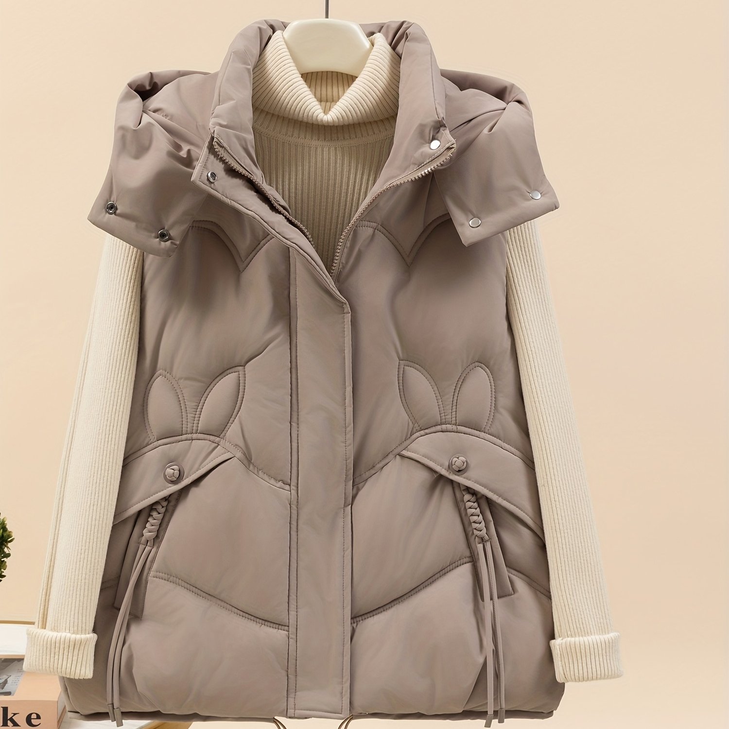 TEMU 다용도 여성용 캐주얼 경량 편안한 단색 후드 집업 조끼, 더블 포켓 디자인.