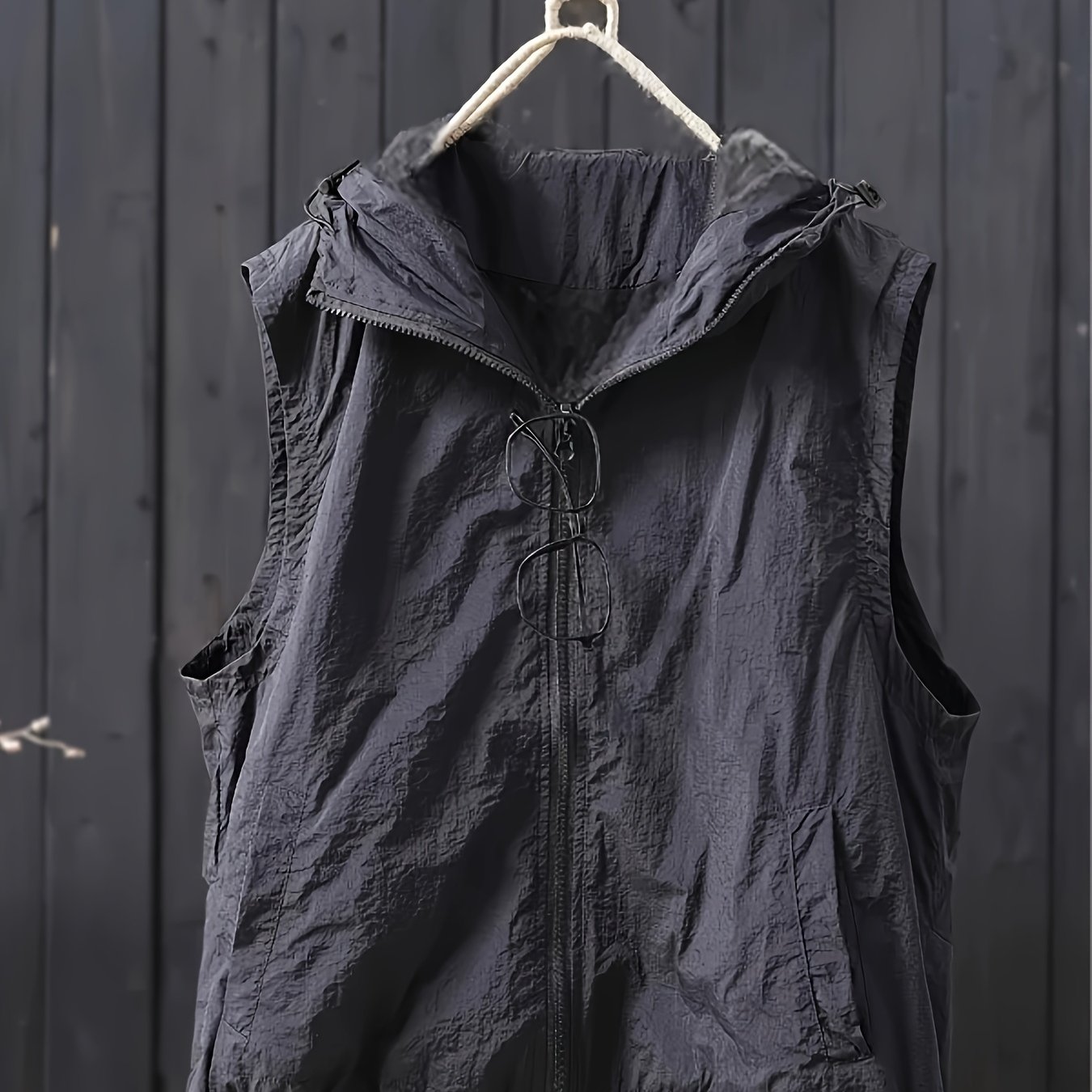 TEMU 여성용 경량 민소매 후드 지퍼업 조끼 - 캐주얼 봄/여름 아우터웨어, 조절 가능한 끈이 있는 후드, 매일 입기 좋은 기계 세탁 가능한 레귤러 핏, 부드러운 질감 원단
