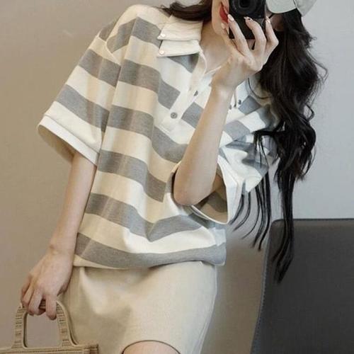 [Gabrioir] 티셔츠 여성 반팔 넉넉한 셔츠 큰 사이즈 세련된 옷 날씬함 귀엽다 블라우스 체형커버 롱 기장 상의 봄 여름가을 무지 튜닉 룸웨어 오버핏