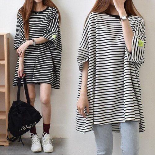 [셀러허브_여성트랜드패션]여성 오버핏 롱티 스타일 패턴 박시핏 셔츠