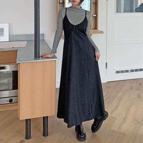 [다잇템]여성 드레스 코디 롱 롱슬리브티 하이넥 세트