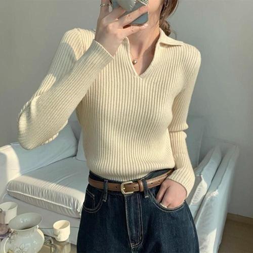 오피스룩 라운드니트 브이넥 니트 정장 오버핏 롱 티 (WFHLS1K)