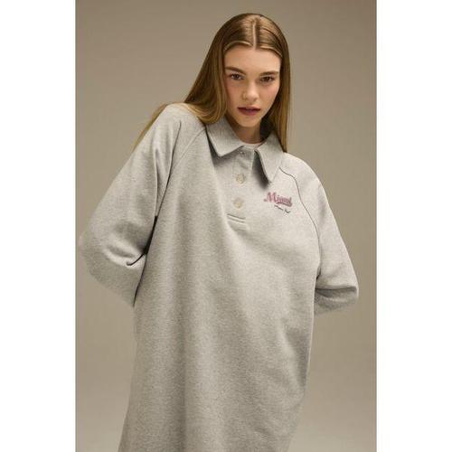 핏몬 여성 빅사이즈 레터링 박시 기모 롱 원피스
