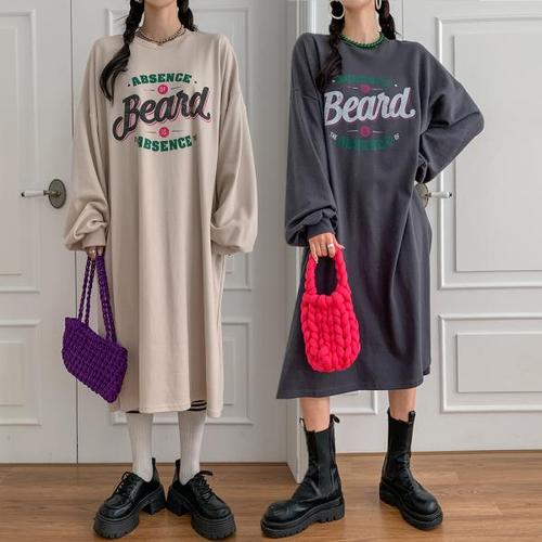 상상그이상 여성용 국내제작 간절기 베이스볼 원피스 빅사이즈 레터링 롱티셔츠 심플 포인트 사계절 면 데일리룩