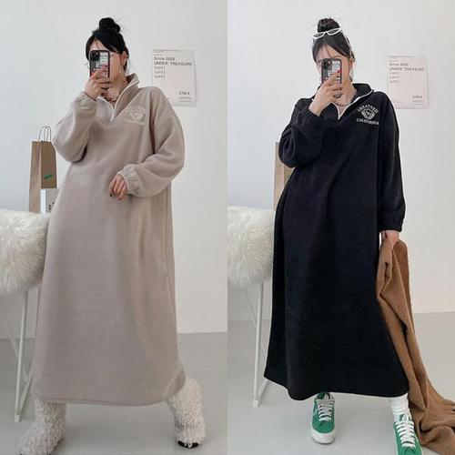 [유야]여성 양기모 후리스 반오픈 자수 롱 원피스 -FOP0197- 겨울