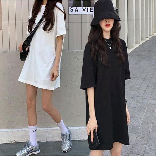 [라일리여성의류] Rly 롱티 깔끔한 박스 오버핏 원피스 티셔츠 스타일