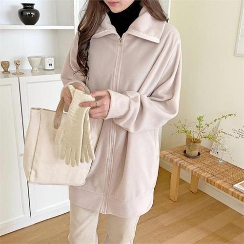 [다잇템]여자 부드러운 플리스 하프 집업 롱 자켓 (9268706A)