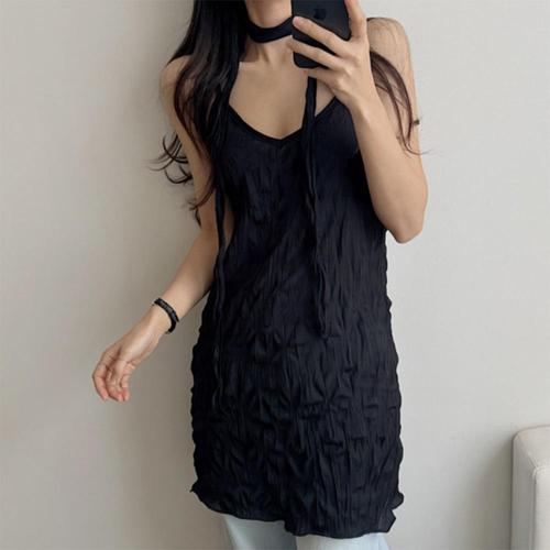 |KMO59C8|여성 브이넥 롱타이 끈 나시 레이어드 미니 드레스