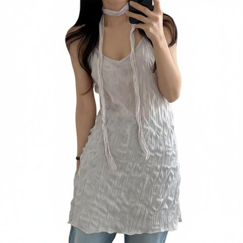 트임포인트 롱 홀터 슬리브리스 나시 JSC-d0083 레이어드룩 넥나시 끈나시
