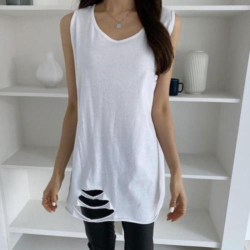 [셀러허브_여성트랜드패션]여자 여름 시원한 면 구제 레이어드 롱 나시