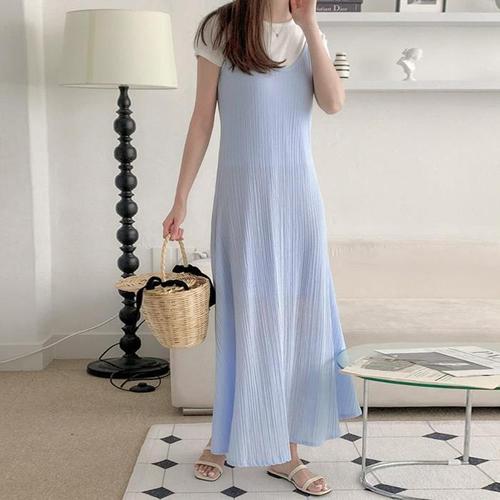 [다잇템]여자 롱 코르셋 끈 캐쥬얼 폴리 원피스 (10313263A)