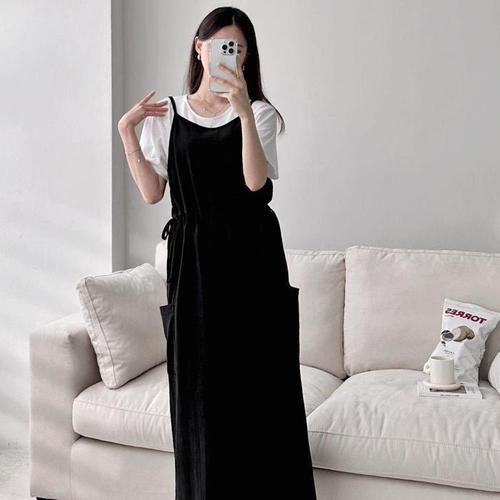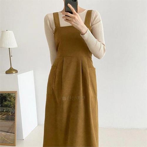 [다잇템]여자 등원룩 주머니 스트랩 코르셋 롱원피스 (10270947A)