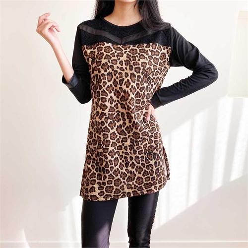 [까르죠아]가죽 브이 슬림 호피 겨울 롱 티셔츠 엄마옷 빅사이즈 (9325842)