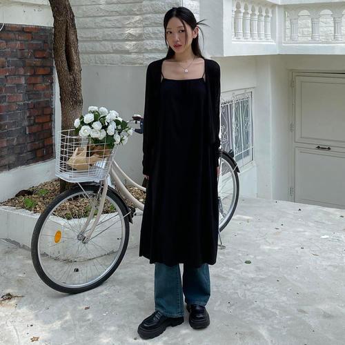 플리츠 끈나시 롱원피스 여성 가을 나시 원피스 여자 봄원피스 봄가을 루즈핏 블랙 휴양지 드레스