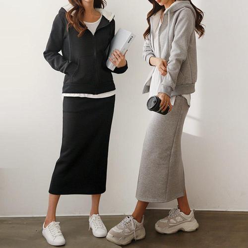 [BZJII551_4B]F13128 날씬 후드집업 롱스커트 치마츄리닝
