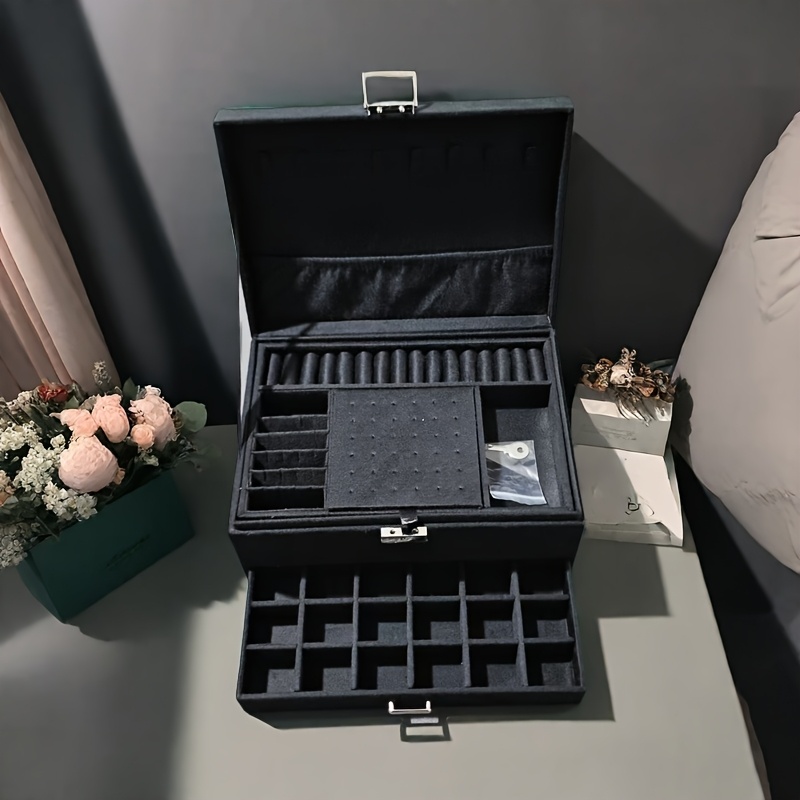 TEMU 1개의 진한 녹색 고급 쥬얼리 보관함, 소녀를 위한 고급 정교한 3단 서랍 쥬얼리 박스, 대용량 쥬얼리 박스 및 정리함, 대형 쥬얼리 세트, 목걸이, 귀걸이, 반지, 팔찌, 이상적인 선물 선택, 쥬얼리 만들기 디스플레이 및 포장 용품, 비즈 및 쥬얼리 만들기