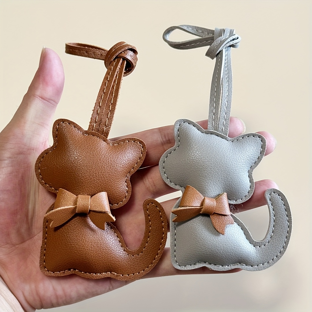 TEMU 2개 세트 우아한 고양이 매력 - PU 가죽 키체인 & 백 펜던트, 브라운 리본 장식, 여성과 소녀를 위한 귀여운 키티 액세서리 - 발렌타인데이, 생일, 특별한 날 선물로 완벽한 선택 (다크 그레이), 고급스러운 공예품, 스타일리시 키체인, 데코 레이스 디테일
