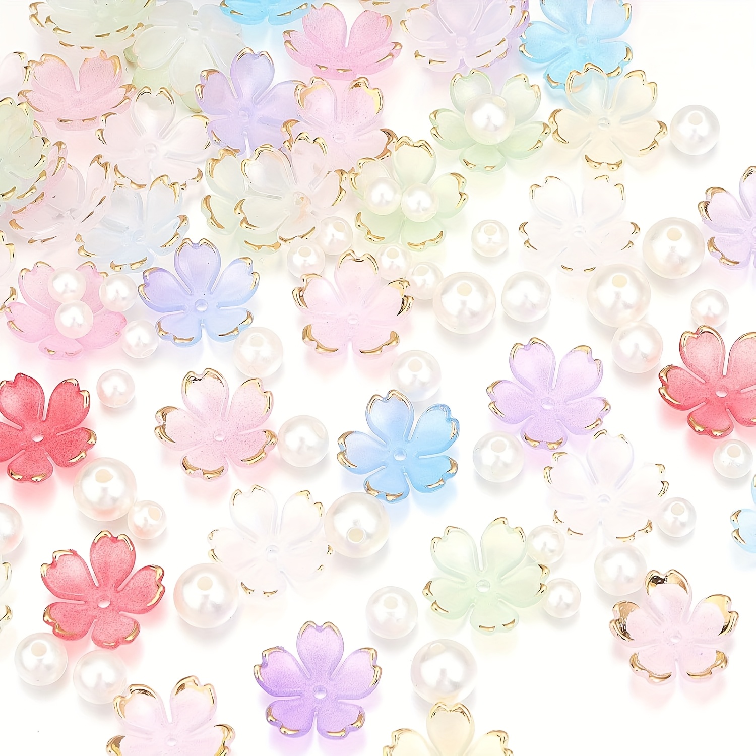 TEMU 200개 아크릴 플라워 비즈, 그라데이션 플로럴 비즈와 멀티사이즈 화이트 펄 비즈 세트 - 팔찌, 목걸이, 귀걸이 DIY 액세서리 제작용