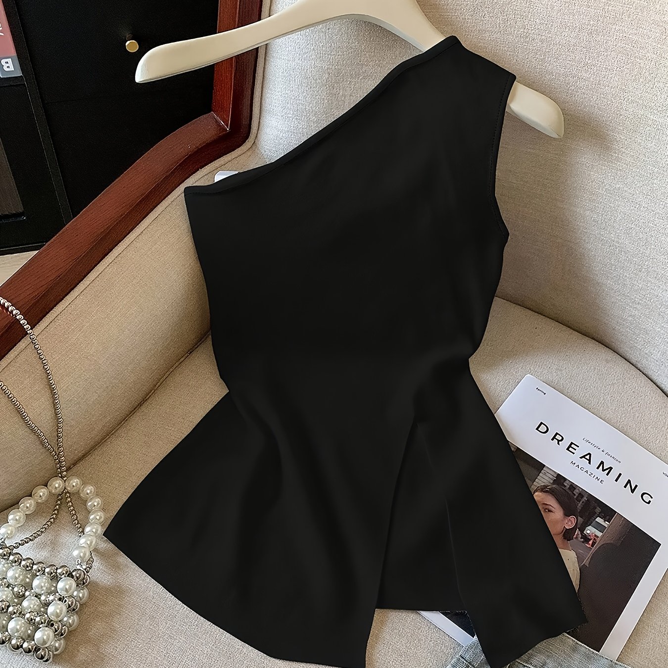 TEMU 투톤 비대칭 밑단 노치 민소매 셔츠