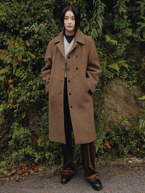 [루에브르] Round-Shoulder Vintage-check Mac Coat SW5WH423-48