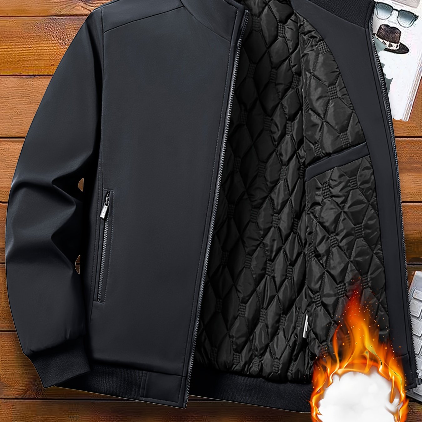 TEMU 남성 캐주얼 단색 지퍼업 스몰 스탠드 칼라 서멀 자켓, 겨울과 가을을 위한 지퍼 포켓이 있는 따뜻한 퀼팅 코트