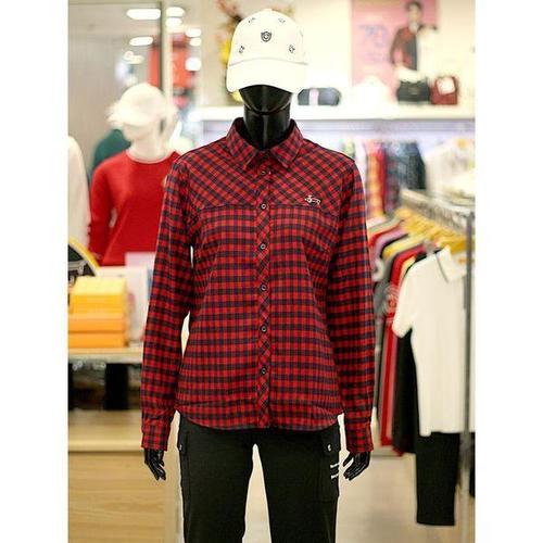 [루이까스텔]세이브존03 여성 골프 가을 기본핏 백로고 체크 프린트 캐주얼 셔츠 남방 AG7LESH902A