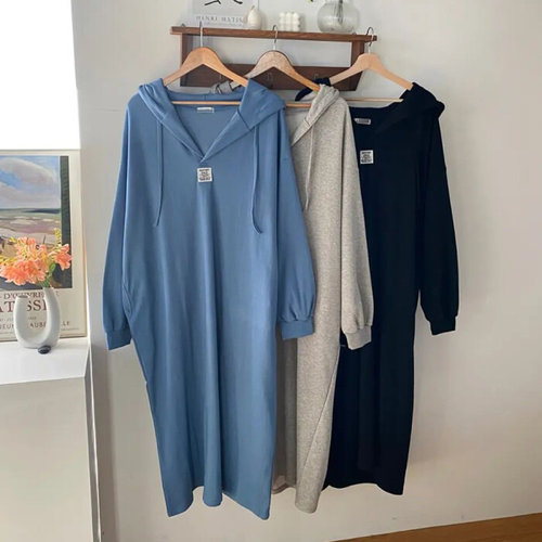 [라일리여성의류] Rly 여성 겨울 데일리 등원룩 기모후드 롱원피스 루즈