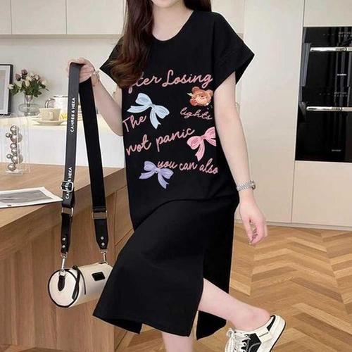 [에이치플러스몰]여성 레터링 반팔 반바지 LKSS37 티숙 티숙 롱티숙 루즈핏 여성 나시 롱반팔
