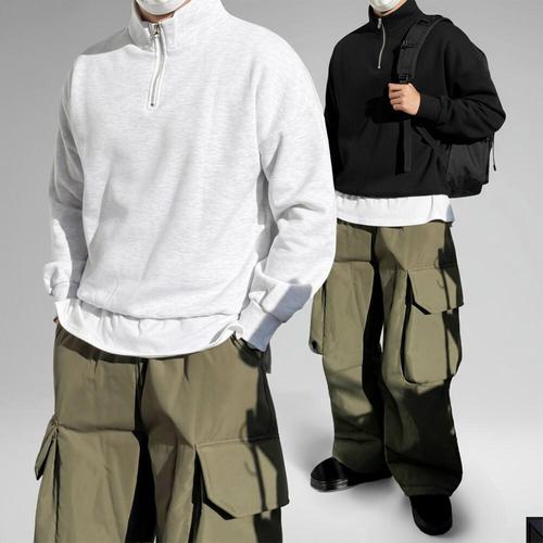 [노멀쉐이크][1+1] 히터스 [봄가을/겨울] 2타입 오버핏 반집업 무지 기모 맨투맨 (5color)_2
