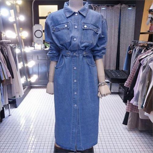 조절 롱 데님 원피스 남방 셔츠 루즈핏 허리 긴 여자 WFLDHXQ